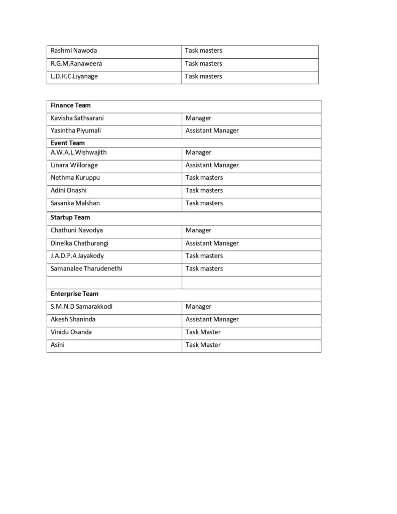 Lecturer in charge & Senior treasurer
